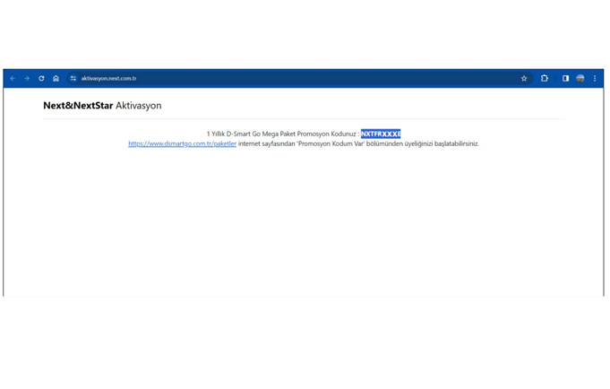 Next D-Smart GO Mega Paket Kod Aktivasyonu