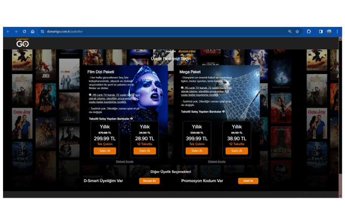 5- Site üzerinden verilen "D-Smart Go Mega Paket Promosyon Kodunuzu" not alınız! Sayfada yer alan "https://www.dsmartgo.com.tr/paketler" site linkine tıklayarak işleminize devam ediniz.