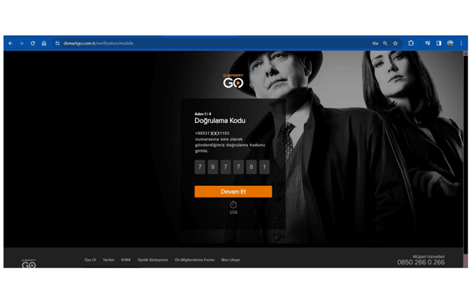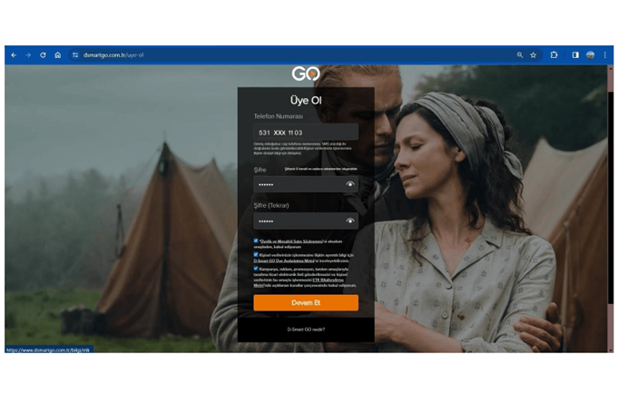 8- Sayfada yer alan telefon numaranızı ve şifrenizi girin. Kutucuklardaki bilgileri okuyarak "Devam Et" seçeneğine tıklayarak işleminize devam ediniz.
